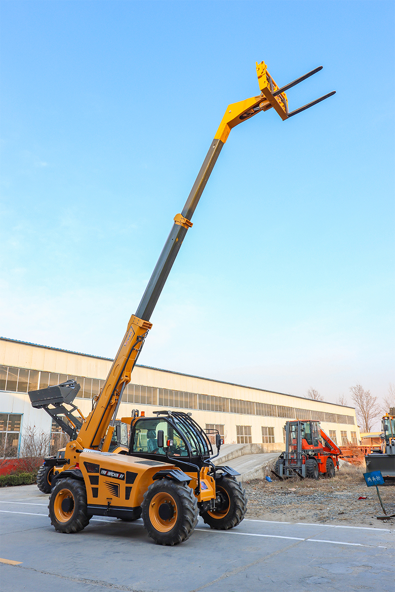 伸縮臂叉裝車是一種具有伸縮式起重臂和叉裝功能的多 功能工程機械,憑借其靈活的機動性、廣泛的適應性和強大 的作業(yè)能力,在多個行業(yè)和領域中都有著重要的應用。
